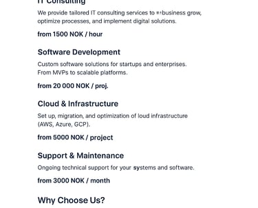 Vi tilbyr skreddersydde IT-løsninger og digital rådgivning for dine behov.